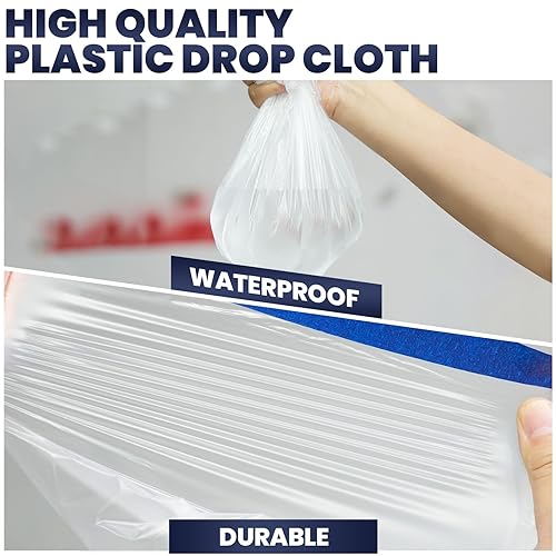 ADHES 3 Rullo Telo Protettivo Per Pittura, Telo Copritutto In Rotolo Bordo Con Nastro Adesivo, Per Mobili/Armadietti/Decorazioni, 1200mm X 27m Masking Film
