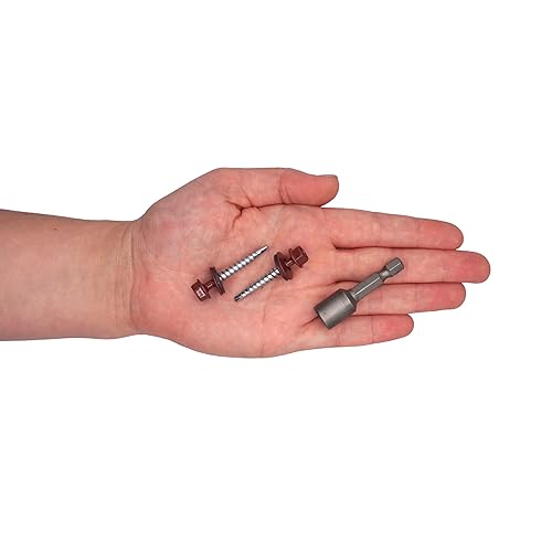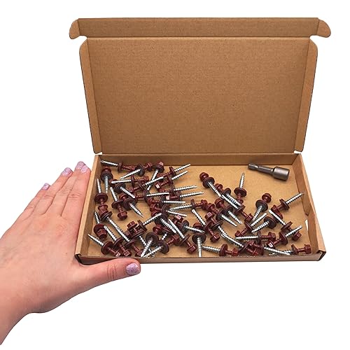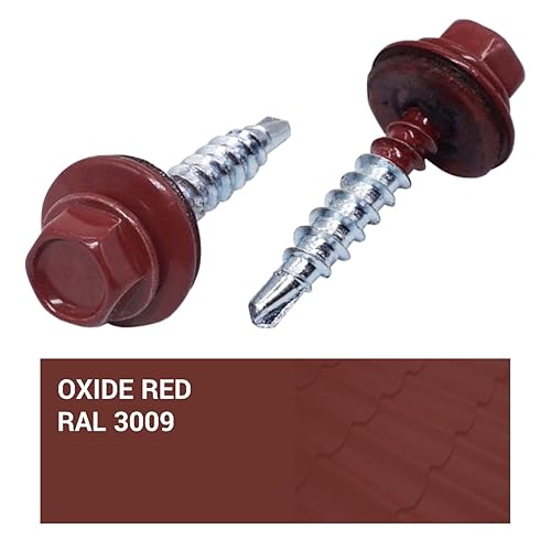 Confezione da 50 viti per coperture in metallo, viti autoperforanti verniciate da 4,8 x 35 mm, con rondelle EPDM, vite esagonale per lamiera (50, rosso ossido RAL 3009)