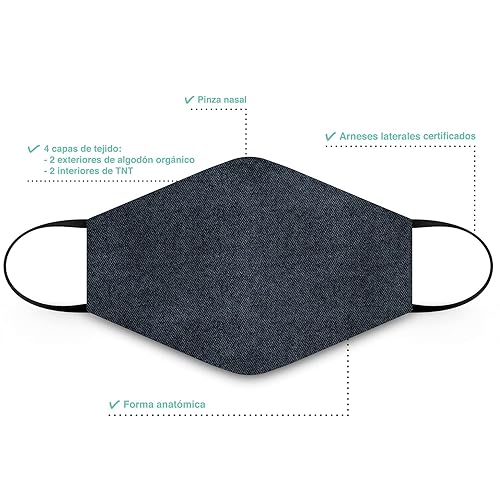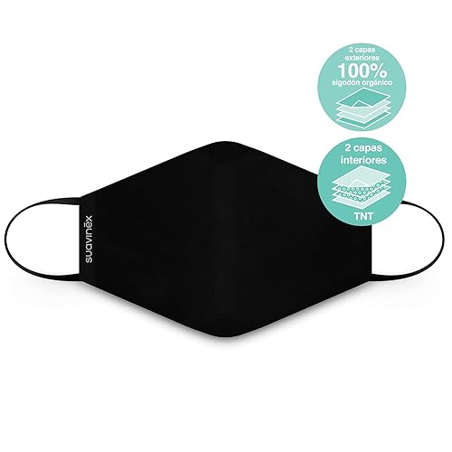 Suavinex 401325 mascherine igieniche per adulti riutilizzabili certificate e approvate +10 anni. 3 strati. 25 cicli di lavaggio.Prodotto in Spagna, 2 unità, Denim e Nera - 29 g