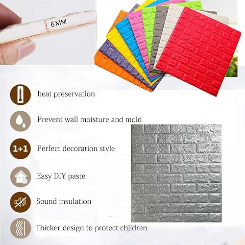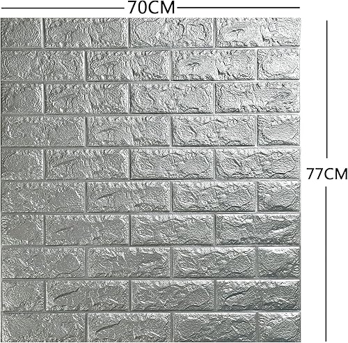 Carta da Parati 3D Mattoni,pannelli decorativi 3d per parete,Autoadesiva Wallpaper, Impermeabile Spessore 6MM Wallpaper per Cucina Ufficio TV Sfondo (10, ARGENTO)