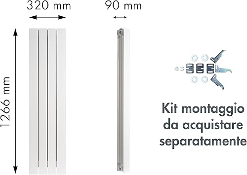 Fondital 83CAM01404 Radiatore in alluminio estruso Garda S/90, 1200 mm, 4 elementi, bianco