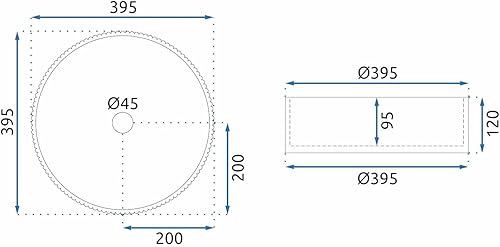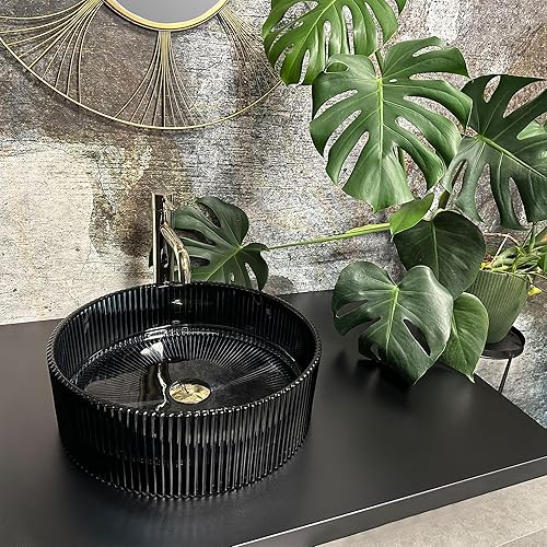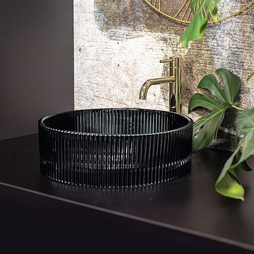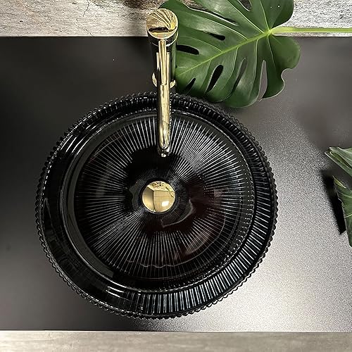 Lavabo da appoggio Ingrid Black Lavandino Bagno 395 x 395 x 120 mm in Vetro (Nero)