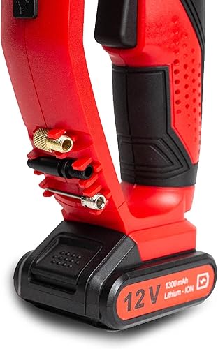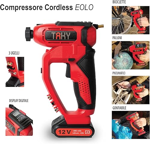 Compressore Cordless Eolo, 12 V 1300mAH, 3 ugelli, display digitale, 4 accessori per il gonfiaggio, Luce Led, Batteria Ricaricabile, 6,5x14x25,5 cm