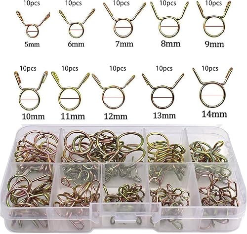 100 Pezzi Fascette Stringitubo a Molla, Morsetto a Molla, Fascette per Tubi a Moll, 10 Dimensioni 5mm/6mm/7mm/8mm/9mm/10mm/11mm/12mm/13mm/14mm