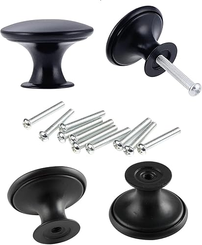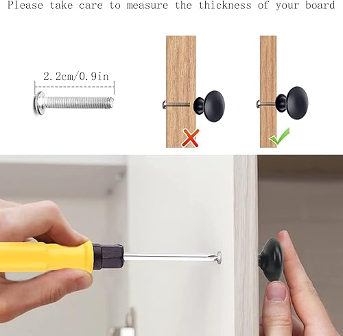 12PCS Nero Pomelli per Porta,Pomelli per Mobili con Viti,Fungo Manopola Maniglia,30mm Manopole dei Cassetti,Maniglia per armadietto, Pomelli per Cassetti per porta, armadio, cassetto e credenza
