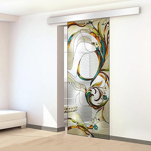 Porta scorrevole in vetro colorato dipinto a mano, modello SI giallo 60x215 cm (60/85/95 cm) 8 mm vetro trasparente, kit completo di ferramenta (60x215 cm, DESTRA)