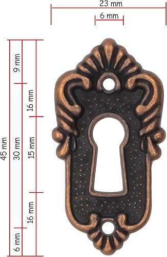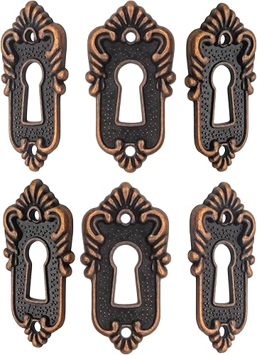 Set di 6 targhette antiche per chiavi e rosette, design vintage in rame