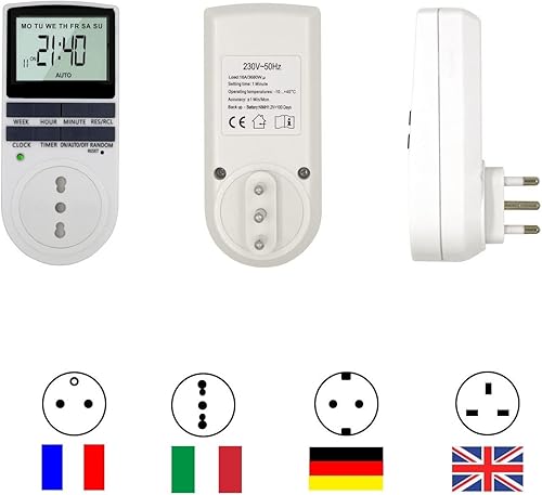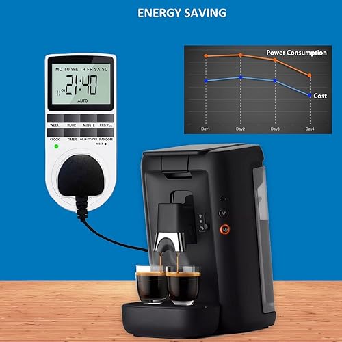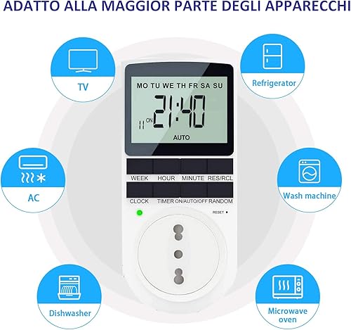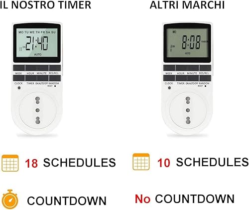 Presa Temporizzata, Set of 2, Presa Programmabile Digitale con Timer, Modalità Casuale Antifurto e Conto alla Rovescia Nuova Versione 18 Programmi, Risparmio di Energia