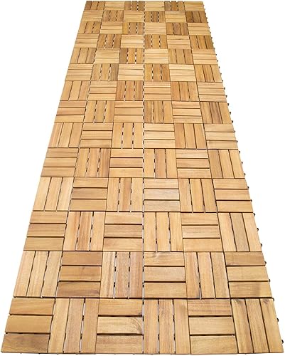 Casaria Piastrelle Legno Acacia 11pz Certificato FSC® Mattonelle 1m² ad Incastro 30x30cm Esterno Mosaico