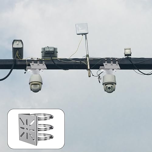 Installazione su Palo per Telecamera di Sorveglianza, Staffa Telecamera Esterna, Staffa di Montaggio Verticale, Adatto per Telecamere di Sorveglianza, Dispone di 3 Anelli Regolabili