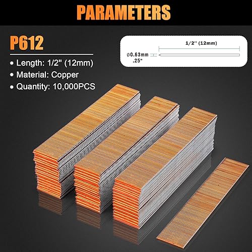 P612 Chiodi a spillo in rame senza testa, calibro 23, 12 mm, 10000 pezzi/scatola, chiodi a spillo per chiodatrice pneumatica