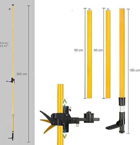 Asta telescopica laser 3,65 m, per laser rotante e laser a linee incrociate, barra di montaggio laser, compatibile con 1/4' e 5/8', supporto telescopico per livellatori per dispositivi di livellamento