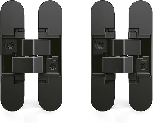 Emuca - Cerniere invisibili per porte di passaggio, lotto di 2 cerniere a scomparsa per porte pesanti, carico di 40 Kg, apertura 180º, zamak, nero