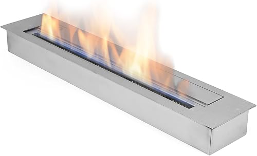 Camera di combustione in acciaio inox, 80 cm, doppia parete, 4,0 litri, inserto per bruciatore a etanolo biologico, bruciatore da incasso, anche per esterni, braciere da giardino