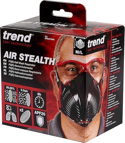 Trend Respiratore riutilizzabile ML Stealth Dust Mask P3, APF20 X WEL, include filtri sostituibili, colori assortiti (Black/Red o Black/Green), Medio grande, STEALTH/ML