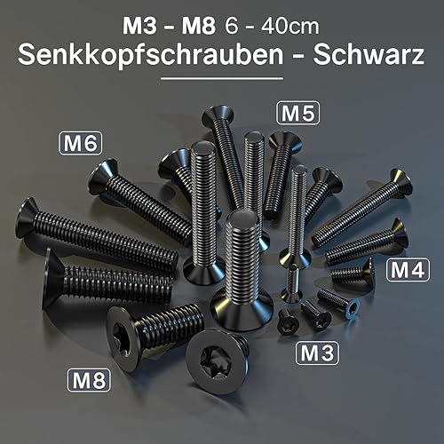 100 viti a testa svasata M3 x 6 mm, viti a testa svasata Torx, in acciaio inox 304, con testa a esagono incassato/Torx (ISR/TX) secondo la norma ISO 14581/DIN 965, per macchine, mobili (nero)