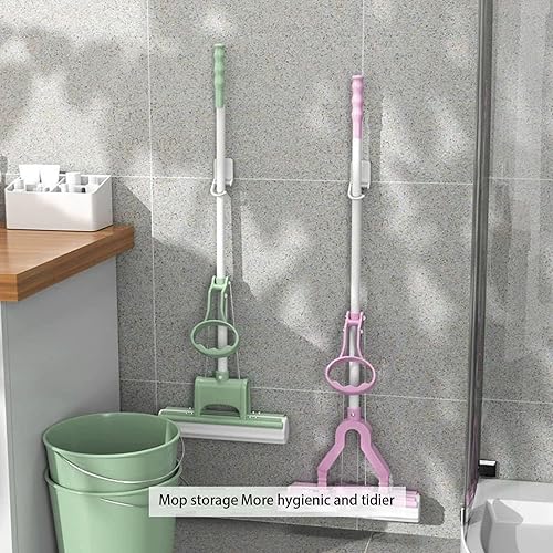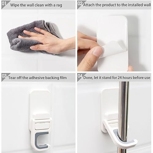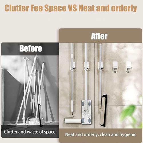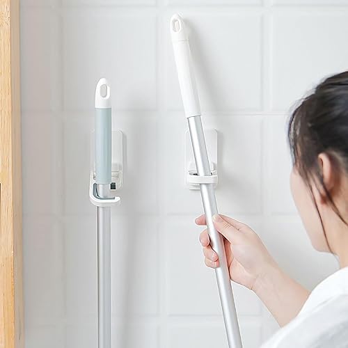 Supporto per scopa e mocio, 4 pezzi, forte autoadesivo, organizer da parete, per bagno, cucina, giardino