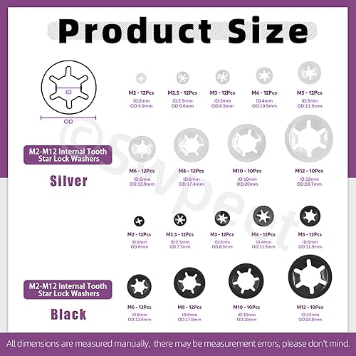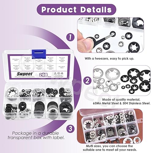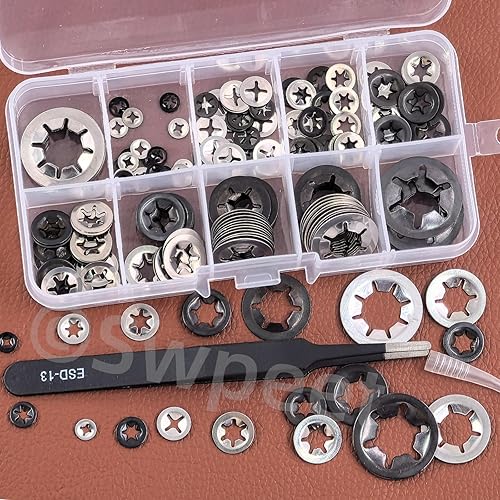 236 dischi di sicurezza in acciaio inox 304 con clip e dentata interna, con pinzette, set di dadi di sicurezza a molla push on per velocità
