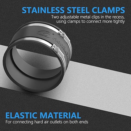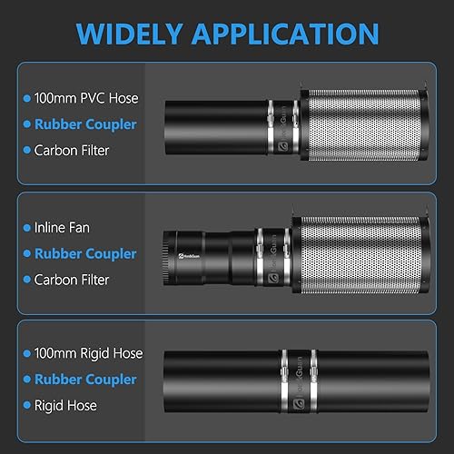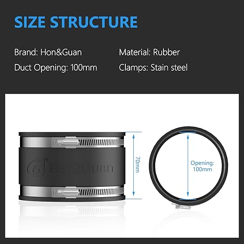Hon&Guan Manicotto in gomma flessibile da 100 mm, con due fascette in acciaio inox, manicotto antirumore, inodore, connettore per tubo per ventilatore, filtro a carbone, tubo rigido, tubo in acciaio