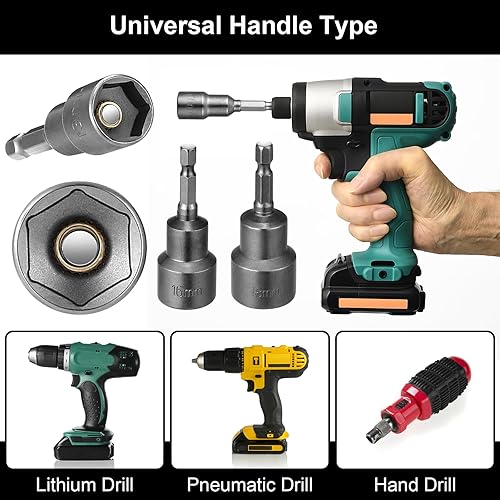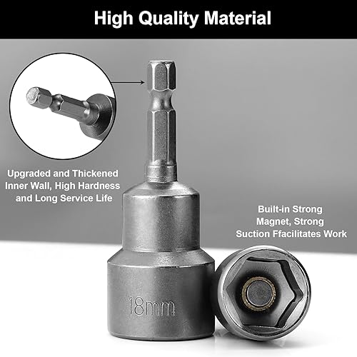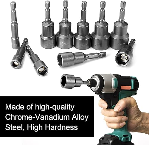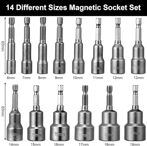 14 Pezzi Bussole per Avvitatore, 6-19 mm Magnetico Hexagon Nut Driver Drill Bit, Attacco Esagonale da 1/4' per Trapani Dadi e Adattatori per Bussole a Percussione