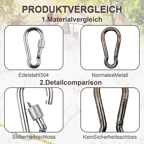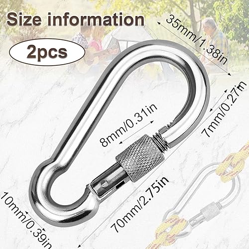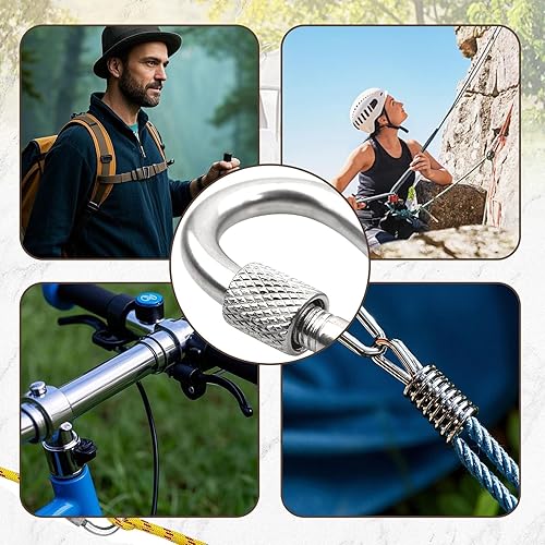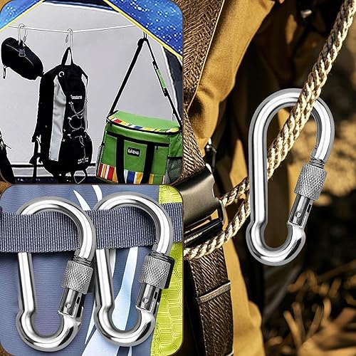 2 Pezzi Moschettone a Vite 304 Inox, Moschettoni con Chiusura a Vite, per Appendere Funi, Catene, Cinture, Cavi, Portachiavi con Viti in Acciaio Inox