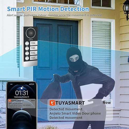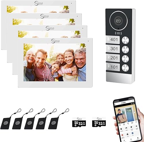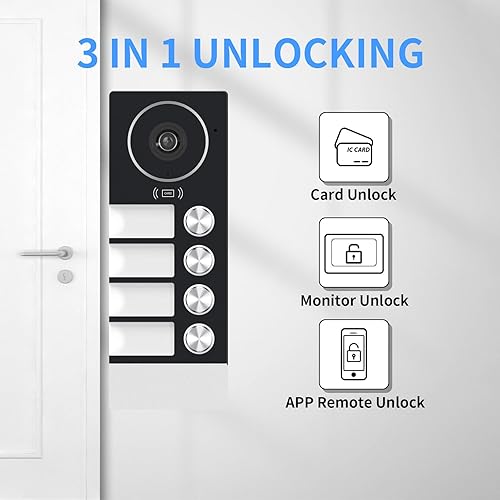 Sistema di videocitofono dell'appartamento cablato, 4 unità 7 pollici Touch Monitor, 3 in 1 sblocco, Dual Way Intercom Tuya per la casa Vally (bianco)
