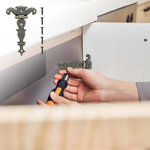 4 cerniere antiche a T con cerniera retrò, cerniere per mobili, cerniere con viti per armadi, finestre, porte in legno