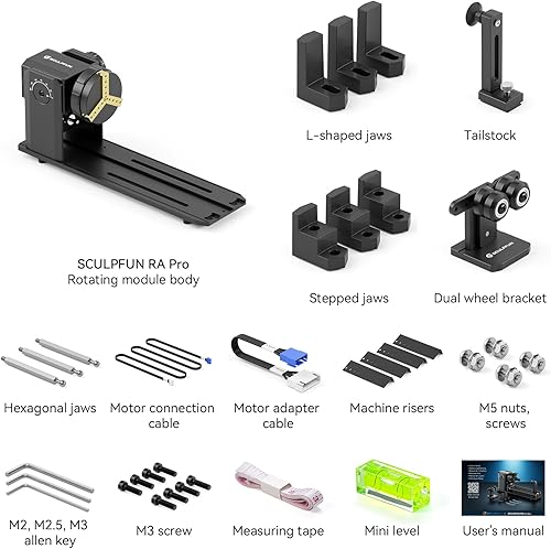 SCULPFUN RA Pro Rullo rotante laser per incisore laser con 3 ganasce, 3 in 1 multifunzione per incisione laser di oggetti rotondi irregolari cilindrici