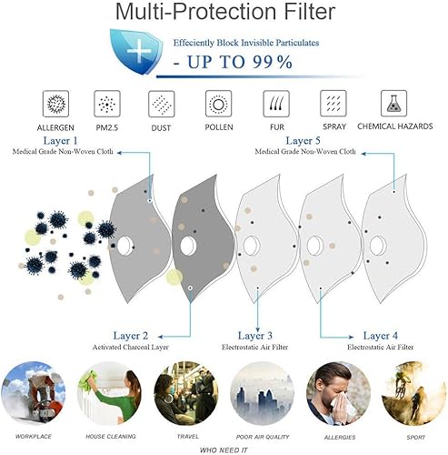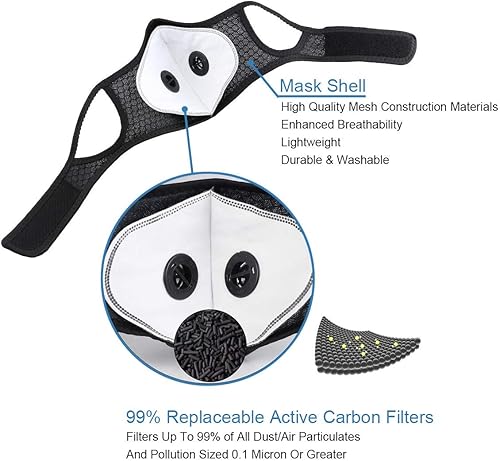 AOPERK Maschera antipolvere con 4 filtri extra a carbone attivo, maschera traspirante lavabile e riutilizzabile per allergie ai pollini, lavorazione del legno, corsa, ciclismo, attività all'aperto