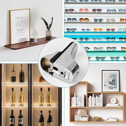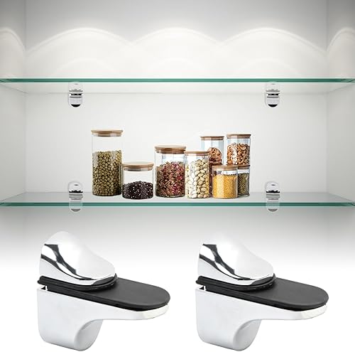 Anseom Supporto per Ripiano in Vetro Regolabile, 4 Pezzi Reggimensola Vetro Regolabile con Viti, Supporto Mensola Vetro per Ripiani in Legno/Vetro di Spessore 3-21 mm