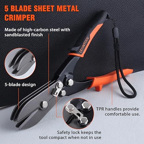 Crimpatrice manuale a 5 lame per lamiera, strumento per crimpatura condotti HVAC strumento per condotti di calibro 22-28, pluviale per stufe e lavori di ventilazione, crimpature per tubi e