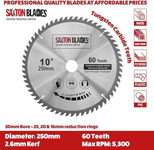 Saxton 2 lame circolari per legno TCT da 250 mm x 30 mm, 40 e 60 T, per seghe da 255 mm