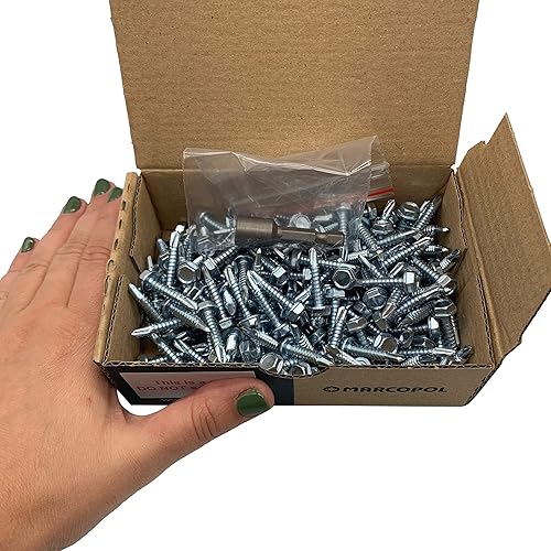 Confezione da 200 pezzi, DIN 7504 K in acciaio zincato 4,8 x 25 mm, viti autoforanti in lamiera di metallo, testa a rondella esagonale, autofilettante (200, 4,8 x 25 mm)