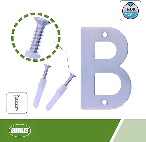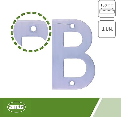 Amig | Lettera B in acciaio inox per avvitamento interno ed esterno | 100 mm | resistente | per portali, pareti o facciate | finitura argento