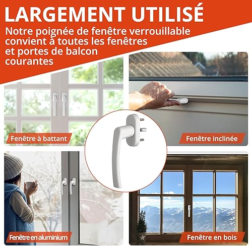 4 Pezzi Maniglia Finestra, Maniglie per Finestre in Legno, Maniglie per Finestre, Maniglia Porta Finestra con 8 Viti per Finestre, Porte del Patio e Porte del Balcone (Bianco)