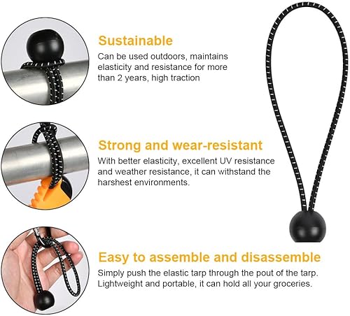 50 PCS Corde Elastiche con Sfere da 15 cm, Elastici per Teloni Durevole Portatile, Corda Elastica in Gomma, Corda Elastica a Sfera per Teloni, Padiglioni, Tende, Campeggio