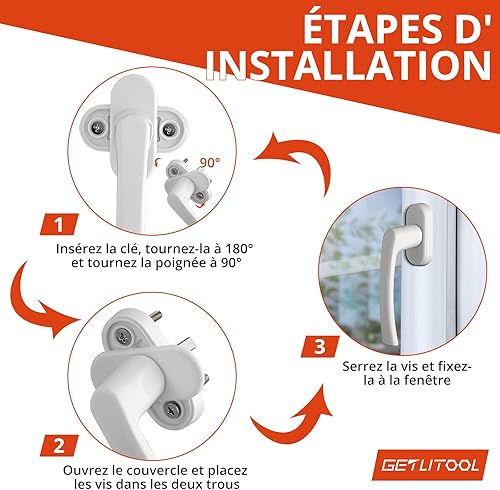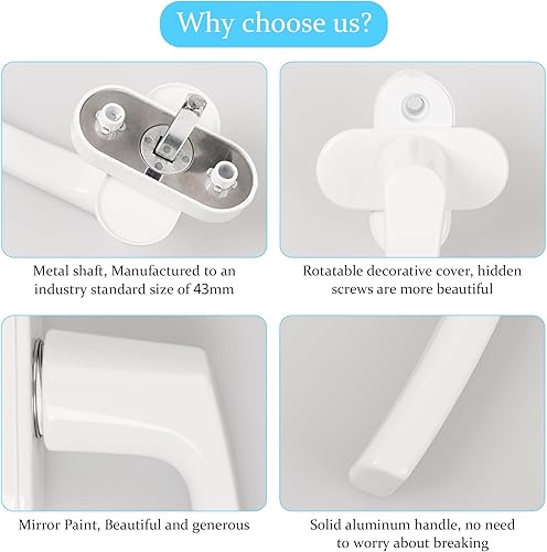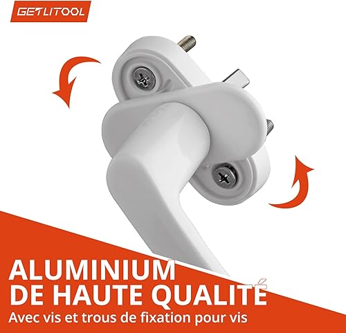GETLITOOL 2 Paia Maniglia per Finestra in Lega di Alluminio Senza Cilindro di Chiusura 4PZ Maniglie per Porte Finestre a Battente Mandrino 35mm con Viti per DIY Protezione Antifurto - Bianco