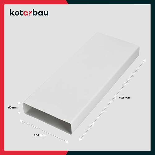 KOTARBAU® Canale Piatto 204x60 mm Condotto di Ventilazione in plastica Lunghezza 50 cm efficiente Sistema a Canale Piatto per Una Ventilazione ottimale Canale Piatto Condotto di Scarico Cappa Bianco