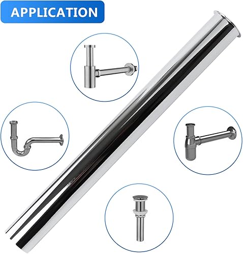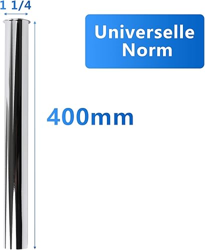 OPERMAXER Tubo sommergibile in ottone, lunghezza extra 400 mm, per sifone universale, prolunga tubo 1 1/4' x 32 mm, tubo di regolazione con guarnizioni, cromato
