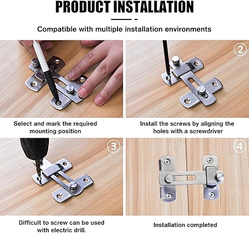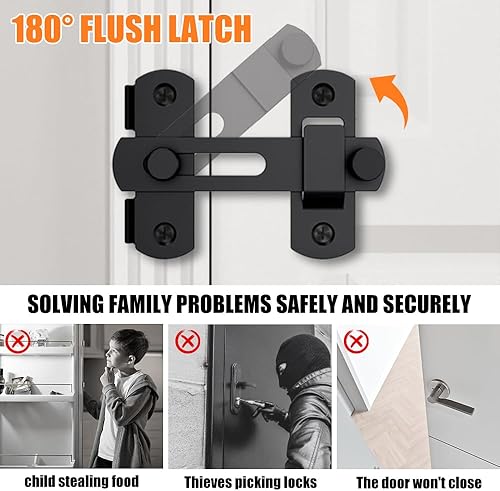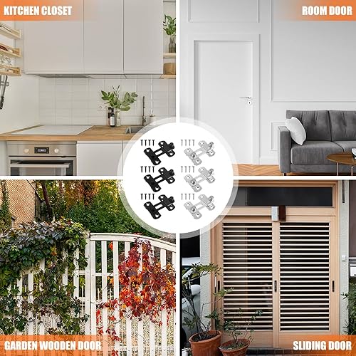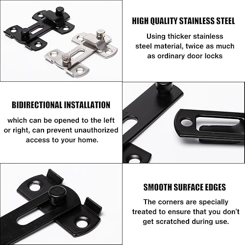 6 Pezzi Chiavistello Porta Scorrevole 180 Gradi Serratura Porta in Acciaio Inossidabile Chiusura Della Porta Scorrevole con Viti e Cacciavite per Porte, Finestre, Giardino (Nero, Argento)