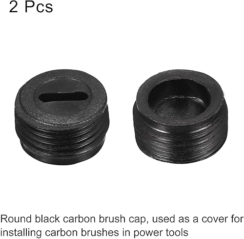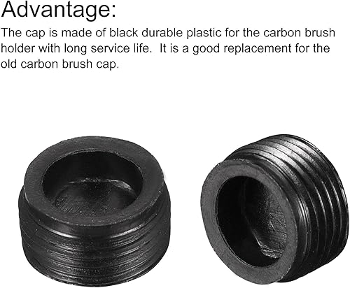 sourcing map Tappo per spazzola in carbonio per motore spazzola elettrica in plastica, filettatura nera, diametro 12 mm, altezza 6,7 mm, confezione da 2