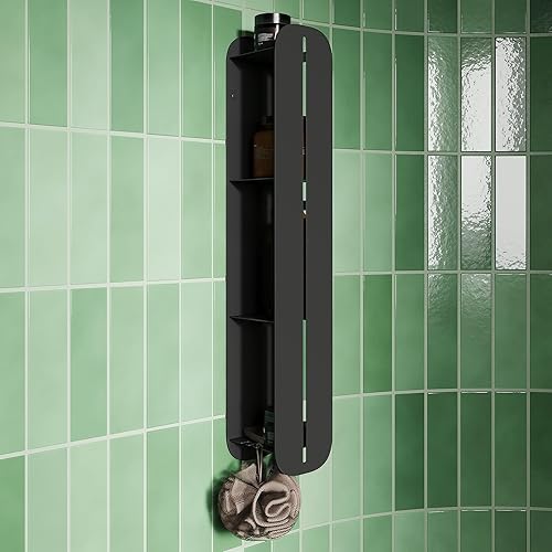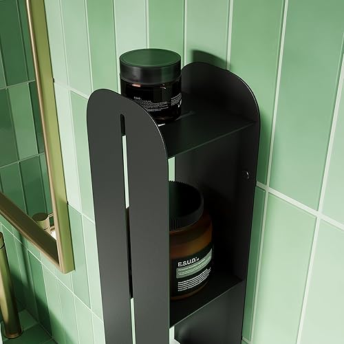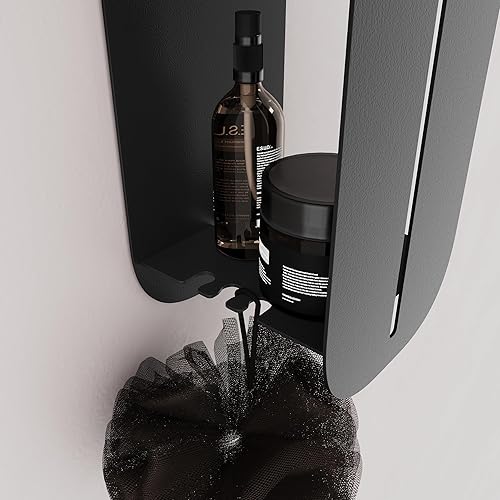 Mensola Bagno in Metallo Nero 80x15cm - Organizer Doccia a Parete, Porta Shampoo Doccia Verticale, Design Moderno, Organizzatore bagno, Accessori doccia, Mensole bagno a parete