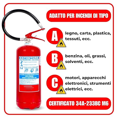 * 2 * ESTINTORI A POLVERE KG 6, COMPLETI DI STAFFA + CARTELLO + PRIMO TAGLIANDO DI CONTROLLO + REGISTRO ANTINCENDIO OBBLIGATORIO OMAGGIO