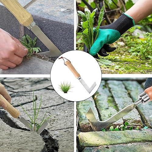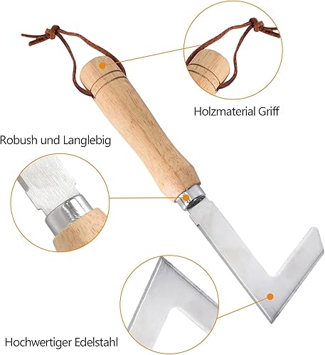 Raschietto per Fughe, Raschietto per Erbacce con Manico in Legno, Raschietto per Erbacce per la Pulizia delle Fughe, Raschietto Manuale per Erbacce in Acciaio Inox, per Eliminare Muschio ed Erbacce