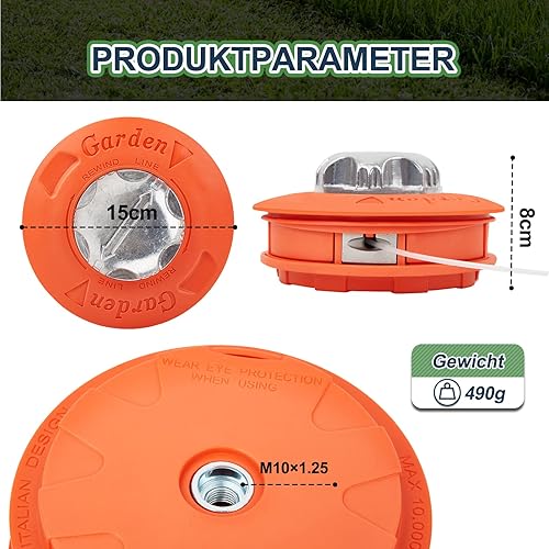 Testa di filo M10 x 1,25 sinistra filo di nylon rinforzato Easy Load & Go per tosaerba, decespugliatore