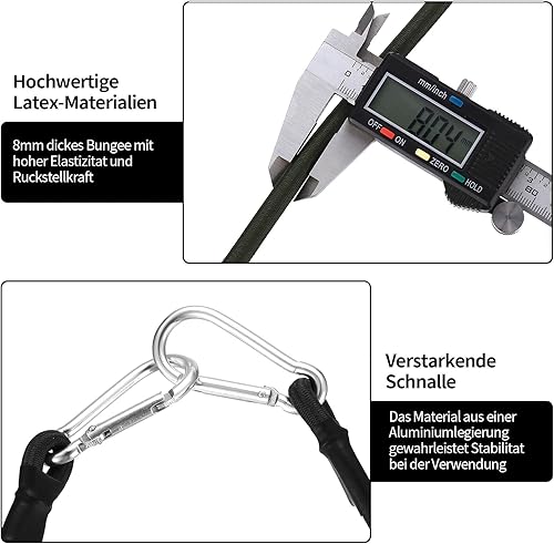 4 elastici con moschettone, 60 cm di espansione con gancio, corda di espansione con moschettone, tenditore per bagagli, tendicinghia in gomma con gancio, corda bungee per bagagli, teloni, fissaggio