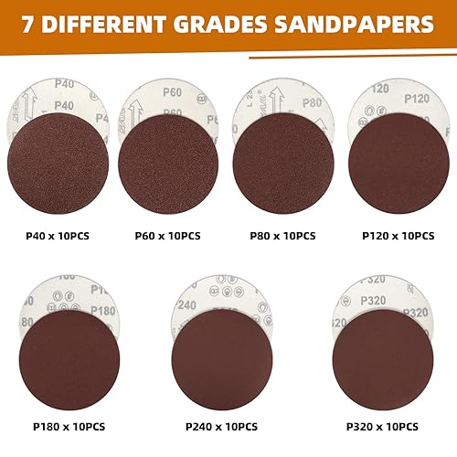 Kit Dischi Carta Abrasiva: Dischi Abrasivi 125 mm Velcro con M14, 70 pezzi Carta Abrasivi per Levigatrice Accessori Trapano, Graniglie 10 x 40/60/80/120/180/240/320 per Levigatura Lucidatura