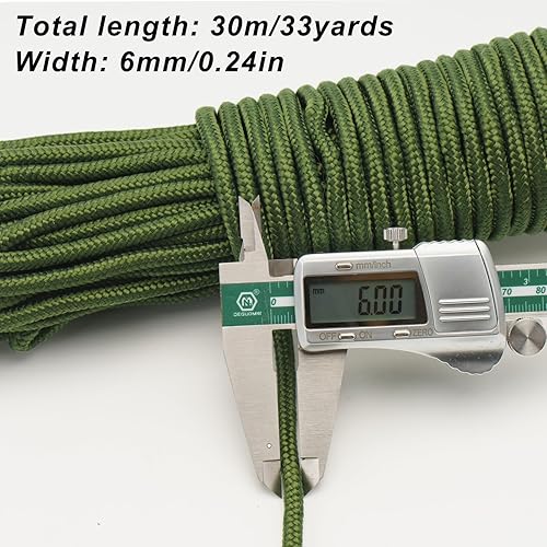 KINGLAKE Corda di nylon verde spessa 6 mm, corda di nylon intrecciata da 30 m, corda di trazione multifunzionale da appendere per campeggio, imballaggio e impacchettamento, corda antivento per tende