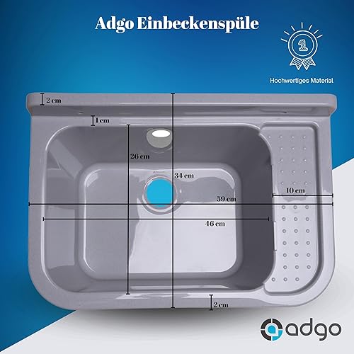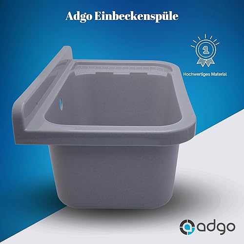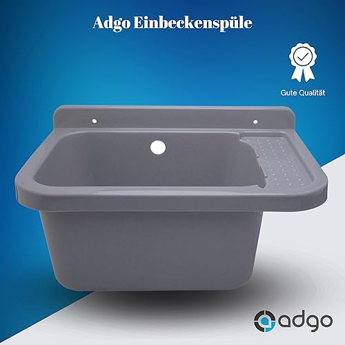 ADGO Lavello Industriale, per Garage, Lavanderia, Officina, Sifone, Kit di Montaggio, Lavandino, Resistente alle Intemperie (59 x 34 x 21 cm, Grigio)