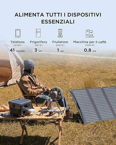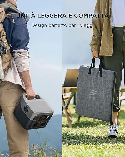 EcoFlow RIVER 2 Max Generatore solare da 512 Wh, centrale elettrica portatile LFP e pannello solare da 160 W, per campeggio e camper, carica al 100% in 60 min, con oltre 3000 cicli(Ricondizionato)